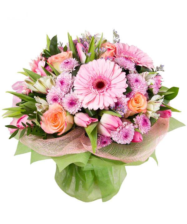 Оригинальный цветочный микс из гербер, хризантем, роз, тюльпанов и альстромерий – это невероятное сочетание нежных, пастельных оттенков, собранных воедино. Такая композиция придется по душе, как молодым девушкам, так и горячо любимым женам, олицетворяя настоящую красоту любви.