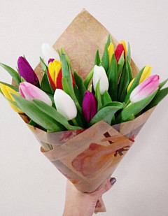 Букет «Тюльпанчик» - яркий подарок по любому поводу для мужчины и ребёнка. Дети и мужчины больше остальных радуются при виде разноцветных и ярких вещей, представьте восторг, от столь красивого и прекрасного цветочного набора. Букет будет хорошим подарком на День Рождение и другой важный праздник, поможет извиниться перед дорогим человеком, просто поднимет настроение на длительное время.